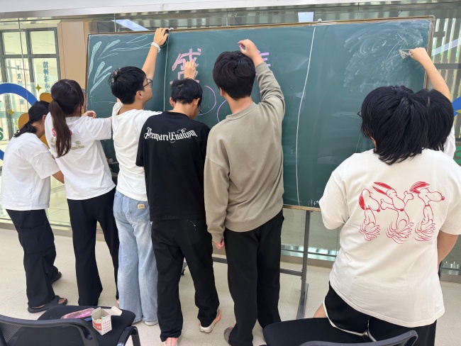 在创作活动中,患者齐聚黑板前,有人执笔书写,有人驻足构思。他们分工协作、思维碰撞,为国庆主题黑板报添砖加瓦,在这一过程中自然锻炼了社会交往能力,每一笔都是医患同心、共筑康复未来的生动写照,也为祖国生日献上了一份充满温情的集体创作礼。