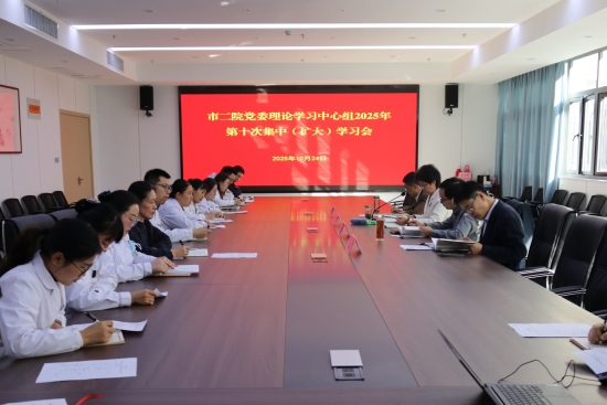 10月24日下午,市第二人民医院召开党委理论学习中心组2025年第十次集中(扩大)学习会,会议由党委书记陈跃梅主持,院领导班子成员、各党支部书记参加会议。