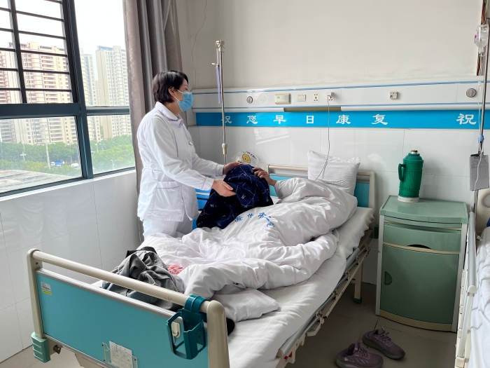 近日,一股强冷空气来袭,气温骤降。我院感染科护士长谢金芳在查房时,注意到一位老人衣服单薄,正微微发抖。