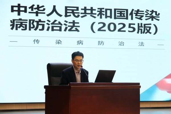 曹文生重点对《中华人民共和国传染病防治法》(2025版)进行解读,从历史沿革与修订背景、分类与预防、监测报告与预警、疫情控制与医疗救治、保护措施与监督管理、法律责任与附则等方面进行了全面的讲解与宣贯。